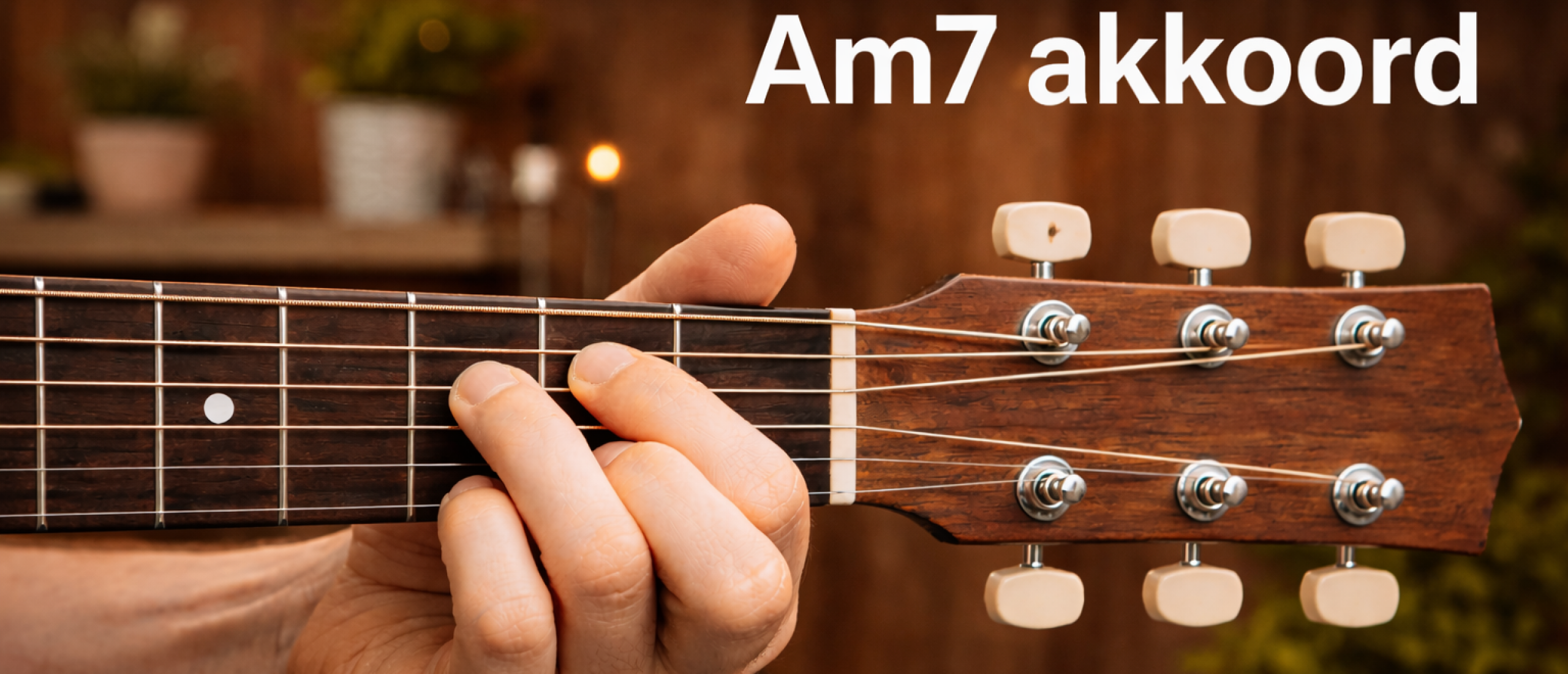 Het Am7 akkoord is een mineur septiemakkoord. Dat betekent dat het is opgebouwd uit een A mineur akkoord, met een extra toon: de kleine septiem. Die extra noot zorgt ervoor dat Am7 zachter, ronder en meer open klinkt dan een standaard Am-akkoord.